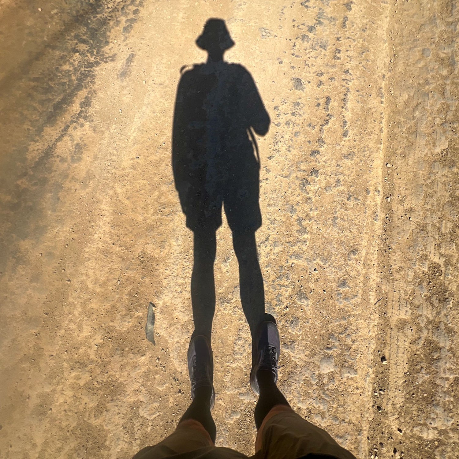 A man in hiking attire sits on rocky terrain under a blue sky with a backpack at his feet, wearing Merino Compression Socks for comfort during long treks.
