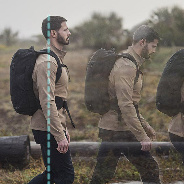 The ruck pulls your shoulders back, which is how they should be with proper posture, even without a rucksack on. It’s uncomfortable to roll your shoulders forward while rucking, like we all do to hunch over a keyboard or when we look down — so you don’t do that.