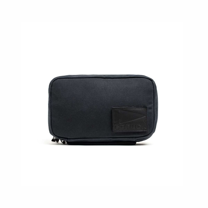 A compact black GR1 Field Pocket - Waxed Canvas with a stitched leather patch on the lower right corner, shown against a white background.